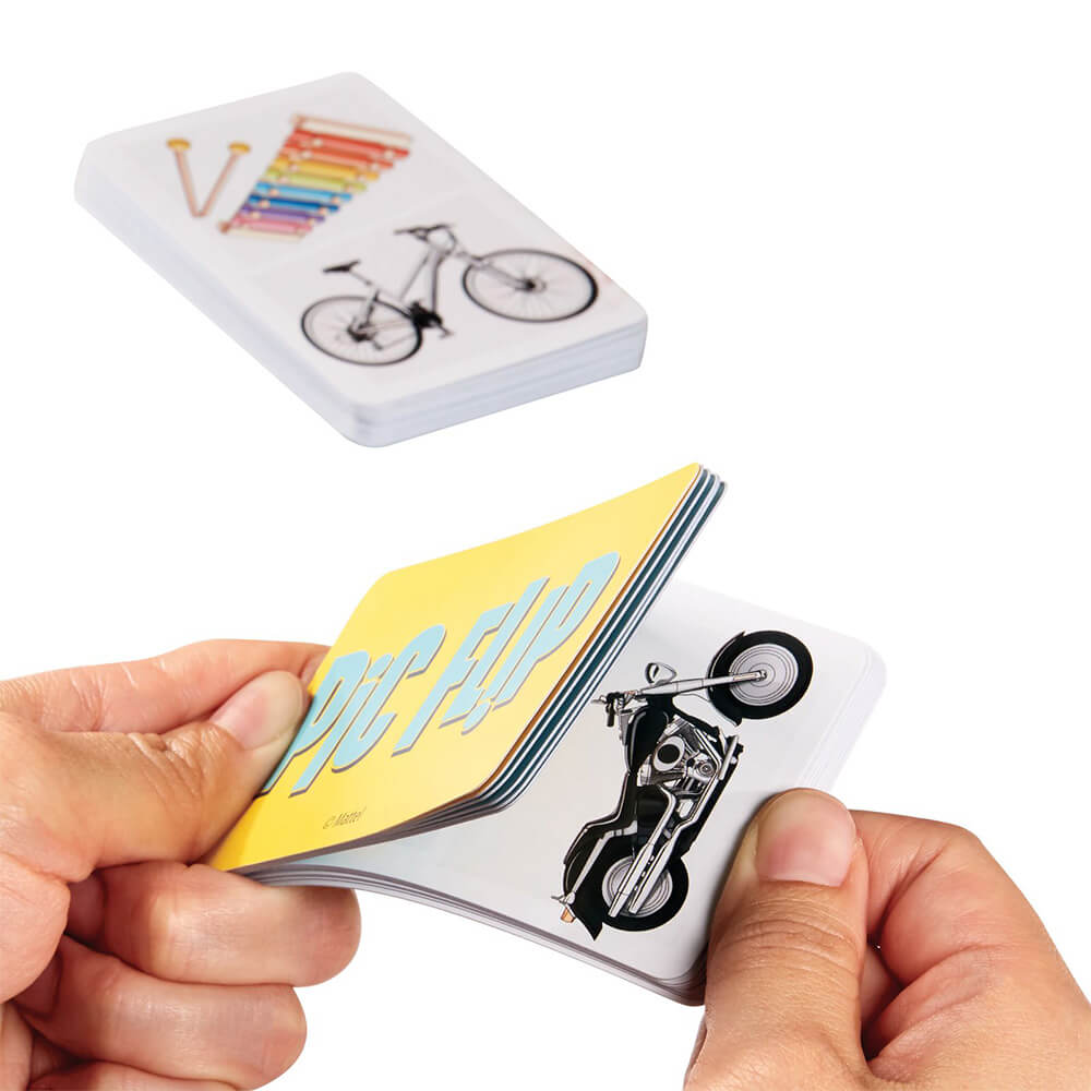• Gracze przewracają swoje karty, aby podłączyć obrazy, znajdować mecze i pozbyć się wszystkich swoich kart. Po znalezieniu jednego meczu, drugi zostanie natychmiast wywołany, a wyszukiwanie jest ponownie włączone - więc pomyśl szybko, ponieważ pierwszym graczem, który pozbył się całej ręki, jest zwycięzcą. Dla 2 do 6 graczy w wieku 7 lat i starszych.