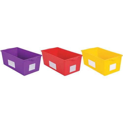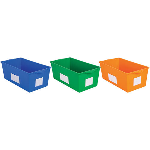 Keep your classroom or home library organised with the Help Yourself Book Bin, designed for flexible and efficient book storage. These adaptable bins can be positioned in two ways-one orientation provides ample space for larger picture books, while flipping them around creates the perfect fit for smaller paperbacks. The open, easy-access design allows children to browse books effortlessly, making it simple to find the title they want and encouraging a love of reading. Each bin comes with handy labels for even better organisation, ensuring books are always neatly categorised and easy to locate. Crafted from durable plastic, these bins are built to withstand daily classroom use while keeping your reading space tidy and efficient.