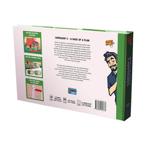 Po chaotycznych, ale udanych wydarzeniach w części 1, „Hack of a Plan” gra trwa od razu. Oz „Hook” Carpenter zebrał swój zespół, a jego cele są ustawione. Wciąż brakuje jednej rzeczy: użyj unikalnych umiejętności swojego zespołu, aby stworzyć solidowany plan zemsty na największym oszustwie w mieście. Przeglądaj pięknie ilustrowane lokalizacje, rozmawiaj z postaciami i rozwiąż trudne łamigłówki w tej grze „Point'n'click”. Szukaj i zbieraj przedmioty, dowiedz się, gdzie ich użyć i połącz ze sobą. Czy masz to, czego potrzeba? Dowiedz się w Cantaloop * interaktywna książka przygodowa!