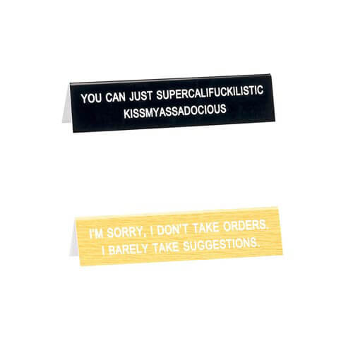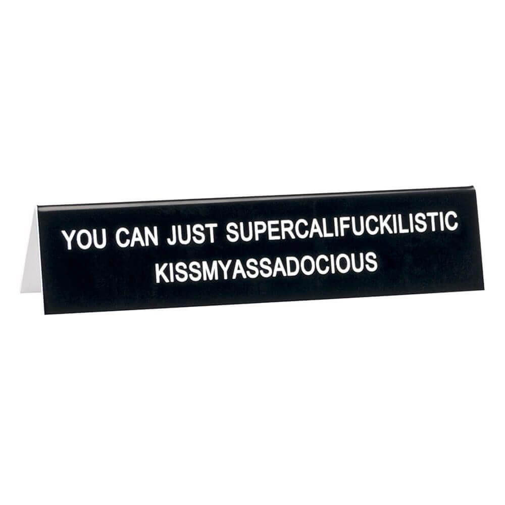 Rozbij monotonię pracy i przynieś do biura trochę LOLS z tym czarnym znakiem biurka z powiedzmy co?. Podpis brzmi: „Możesz po prostu superkalifilistyczne Kissmyassadocious”. Produkt mierzy 14,5 cm x 3,5 cm.