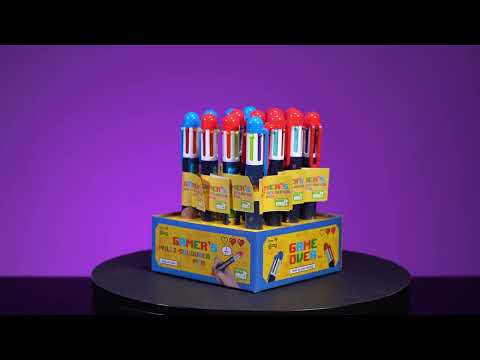 Wyrównaj swoje pisanie z tym nowatorskim piórem graczy! Posiada ikony pikseli z tekstem, który czyta „Game Over”. Z 6 kolorami do pisania: czarny, niebieski, czerwony, pomarańczowy, zielony, fioletowy.