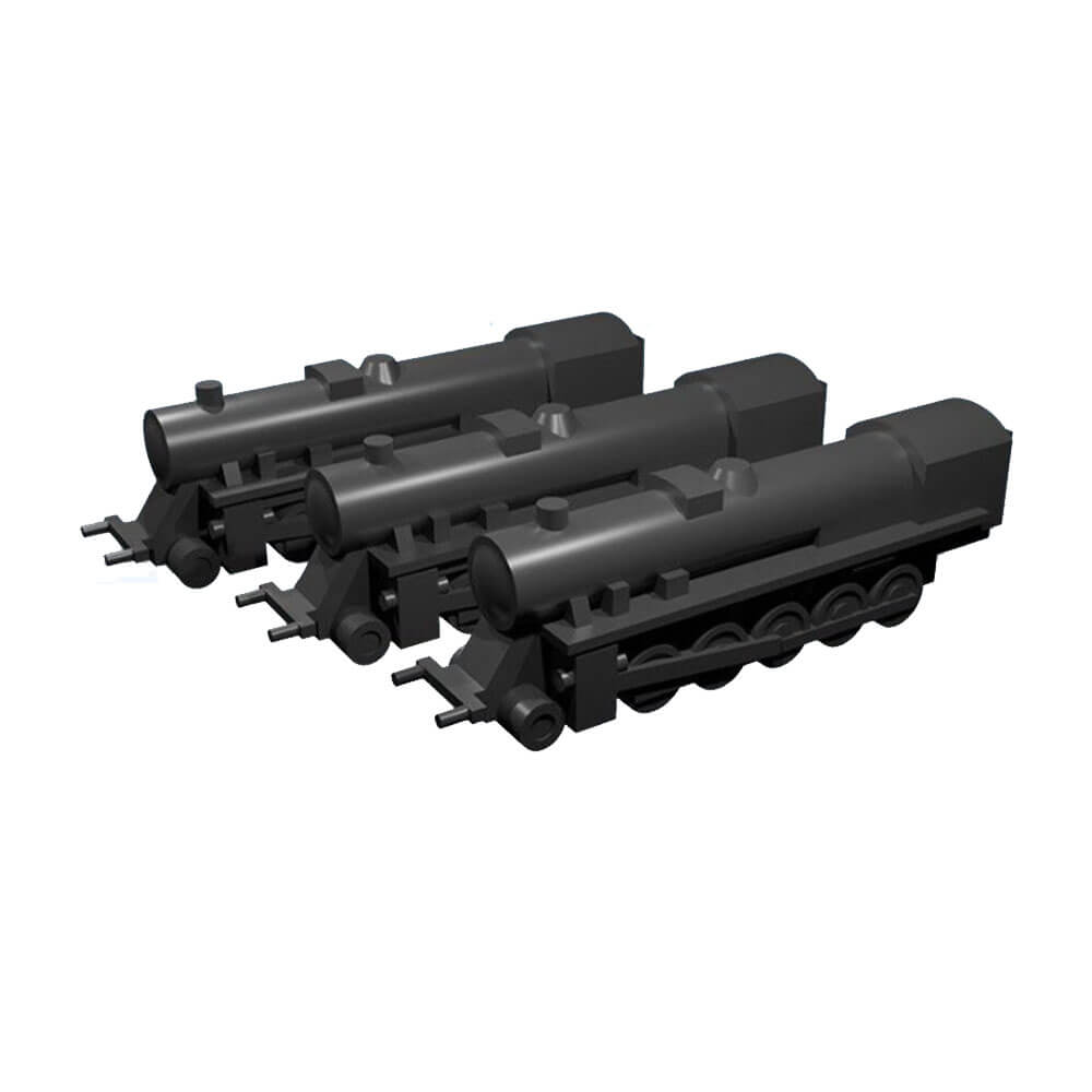 • In this accessory set, Larger Locomotive Miniatures for Giant Playing Mat, players will find beautiful plastic train miniatures, produced in a high scale (1:300), to be used with the Giant Playing Mat set, to keep all the in-game miniatures in the same scale.