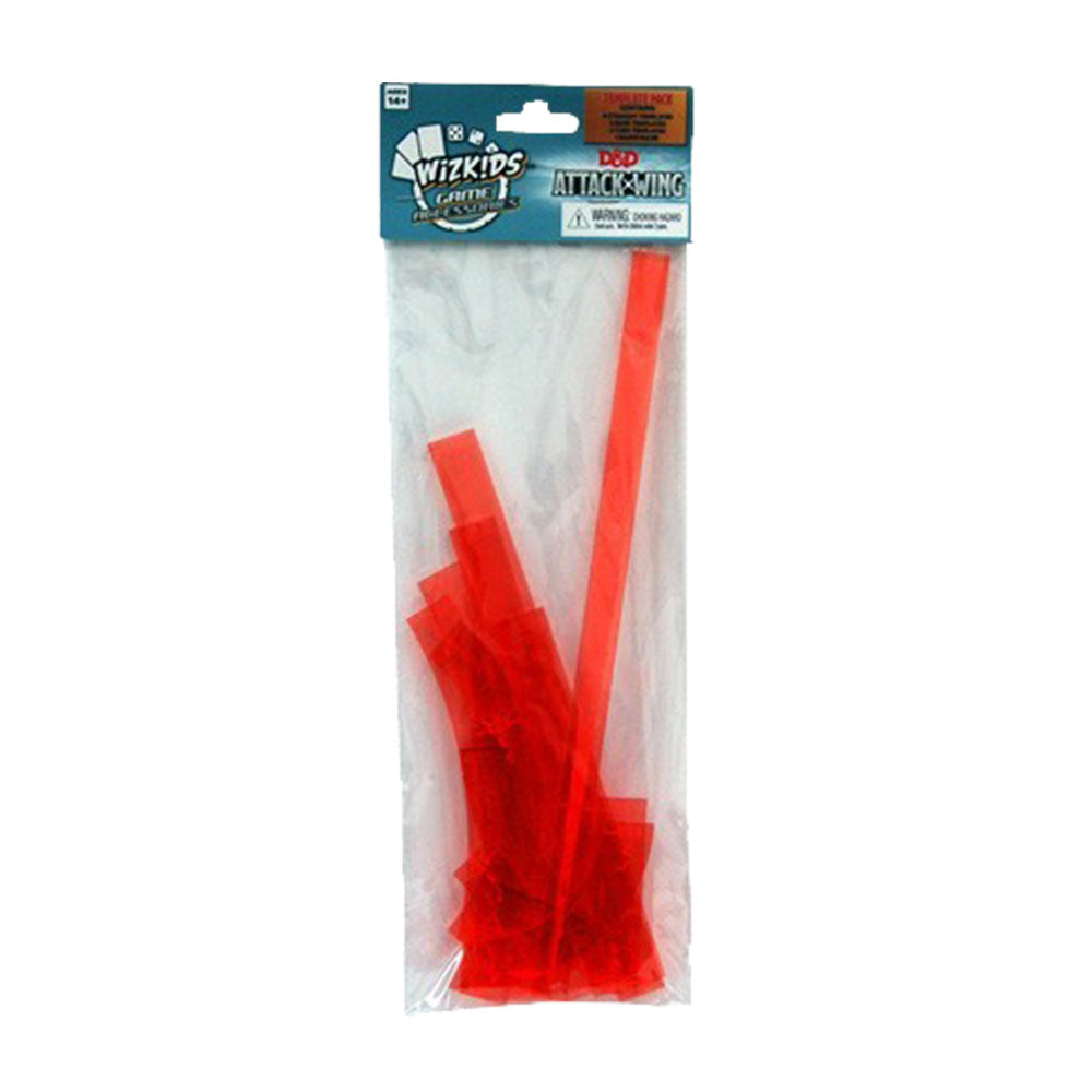 DandD Attack Wing Template Sets include several high-quality, semi-transparent movement templates with laser-etched information on each element for use with DandD Attack Wing. Each DandD Attack Wing Template Set includes one Range Ruler, plus three turn movement, four bank movement, and six straight movement templates.