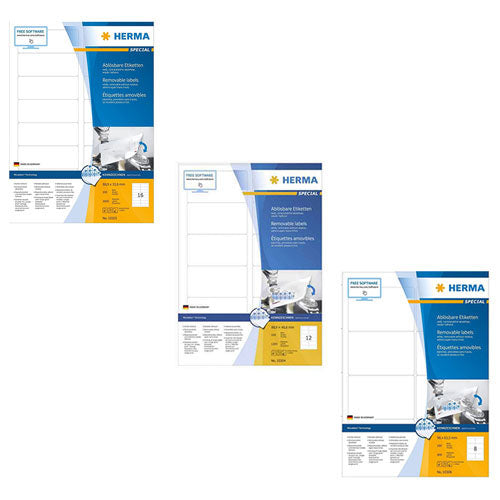 Customize your labeling tasks with Herma Removable Labels! This pack includes 100 A4-sized labels in white, featuring a removable adhesive backing for convenient repositioning or removal. Whether for temporary labeling needs, organizational updates, or file management, these removable labels offer versatility and flexibility. With a strong adhesive that ensures secure attachment yet allows for clean removal, these labels provide convenience and efficiency for all your labeling needs. Get ready to streamline your labeling with Herma Removable Labels!