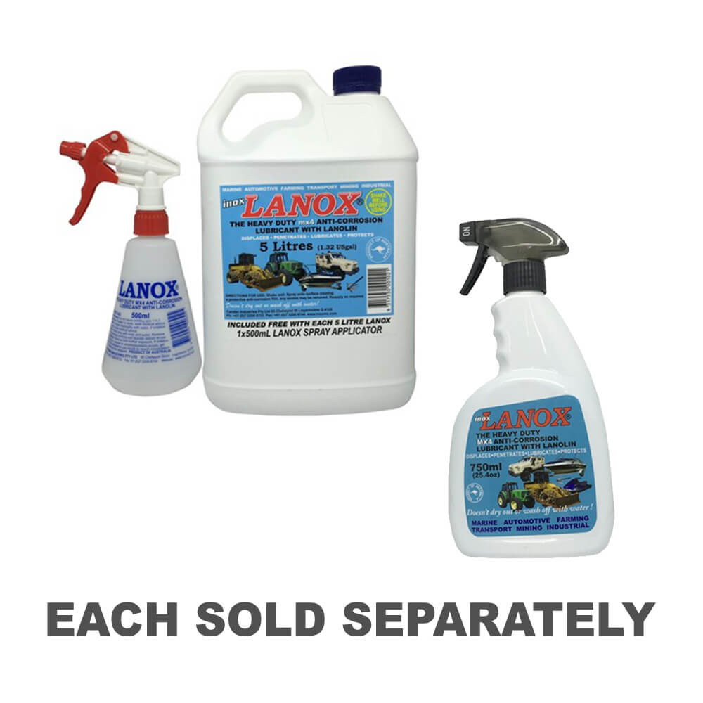 Lanox contains No silicon, kerosene, acid or petroleum fuels. It is harmless to delicate metal surfaces; plastics painted or enameled finishes, fibreglass, rubber or neoprene. It does not become sticky or gum up. It does not dry out or dissolve in water.