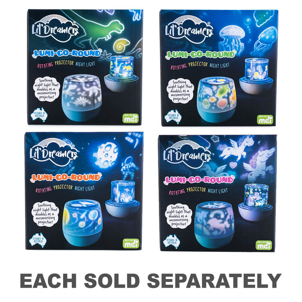 3 light settings, 3 light colours and 3 brightness modes. Includes 3 different films for a variety of fun projections. USB or battery operated