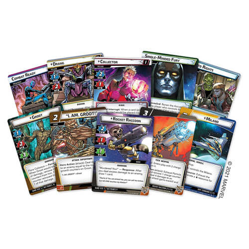 - UNLIKELY HEROES: Within The Galaxy's Most Wanted, you'll find two pre-built hero decks ready to launch you into fighting alongside the Guardians of the Galaxy: Groot and Rocker Racoon.
