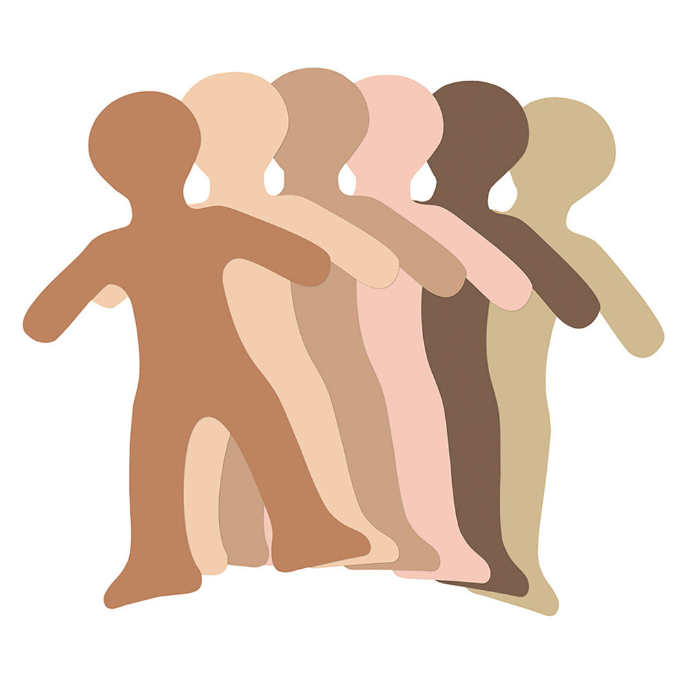 Paper Shapes Doll Pack 50's offers a diverse assortment of paper dolls in six different skin tones. These dolls are ready to be decorated with a variety of materials such as pastels, markers, crayons, paint, coloured papers, and fabrics. They are ideal for use in projects focusing on themes like "about me" or cultural diversity.