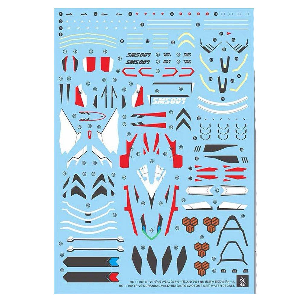 A Valkyrie Durandal YF-29 voada por Alto Saotome em "Macross Frontier" é a mais nova entrada na linha de kit de modelo HG "Macross" de Bandai! Este kit adota a "mudança de atalho", que simplifica a sequência de transformação usando peças de reposição enquanto ainda aproveita o máximo da facilidade de montagem e ampla amplitude de movimento exclusiva da série HG. O kit reproduz fielmente a beleza curva das asas para frente no modo de caça e a silhueta característica no modo Gerwalk. Seu modo battroid também expressa sua linha corporal afiada característica. Os ombros apresentam uma junta de retirada para uma amplitude de movimento expandida, e um eixo de movimento de três vias no peito permite uma ampla amplitude de movimento na frente, nas costas e nos dois lados. As escotilhas de mísseis nos ombros e pernas podem ser implantadas e a faca pode ser armazenada no escudo; Peças manuais expressivas também estão incluídas