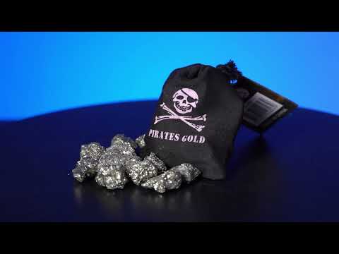 Bolsa de tesouro de pirita dourada!. A pirita ou o 'ouro do tolo' tem uma forte semelhança com o ouro real com seu brilho metálico e coloração de latão pálido. Perfeito para festas de piratas de crianças!