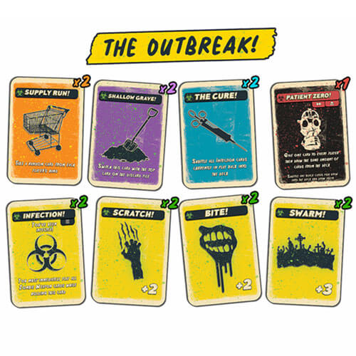 É um jogo dentro do seu jogo de Psycho Killer. Existem duas infecções no baralho e, se você as pegar, será suscetível a ataques de zumbis. Você vai querer pitar a infecção para seus amigos o mais rápido possível, se desejar sobreviver!