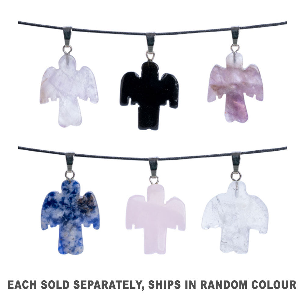Söt ängelhänge för att vägleda och skydda dig. Objektet kan variera mellan 6 ädelstenar: Amethyst, Rock Quartz, Rose Quartz, Sodalite, Opalite, Black Obsidian ..