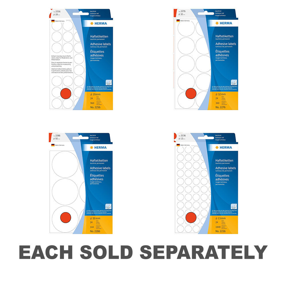 - Lägg till en pop av färg och synlighet i din märkning med dessa lysande röda pricketiketter.