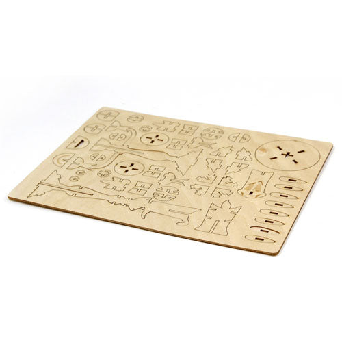 • PUNT OUT: Innehåller en laserskur, FSC -certifierad träark med lätt borttagbara bitar.