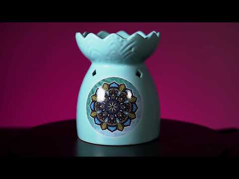 Lugnande oljebrännare med Lotus Bowl -design. Har de 7 chakra -symbolerna, blommig mönster och en mediterande silhuett. Lämplig för användning med doftande oljor, vaxsmältning och tealight -ljus - rena ditt utrymme! Endast handtvätt - inte diskmaskin.