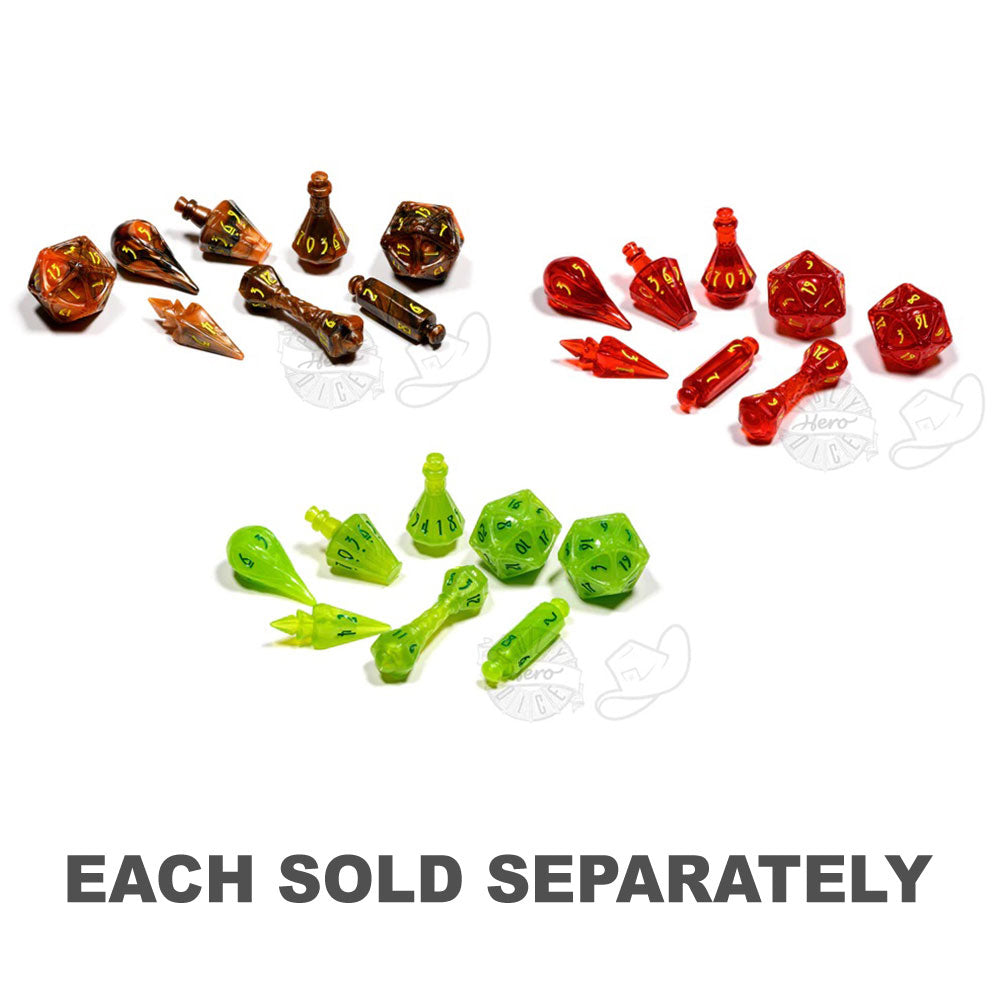 Endast de modigaste sinnen funderar på Arcanes mysterier. Kasta fram en syntes av anpassade tärningar för dina favorit RPG som kommer att ha en respekterad plats i din samling. Varje polyhero -guiden 8 tärningar har 8 tärningar: D4 -bult, D6 eldboll, D8 -rullning, 2 D10 drycker, D12 -trollstav och 2 D20 orbs