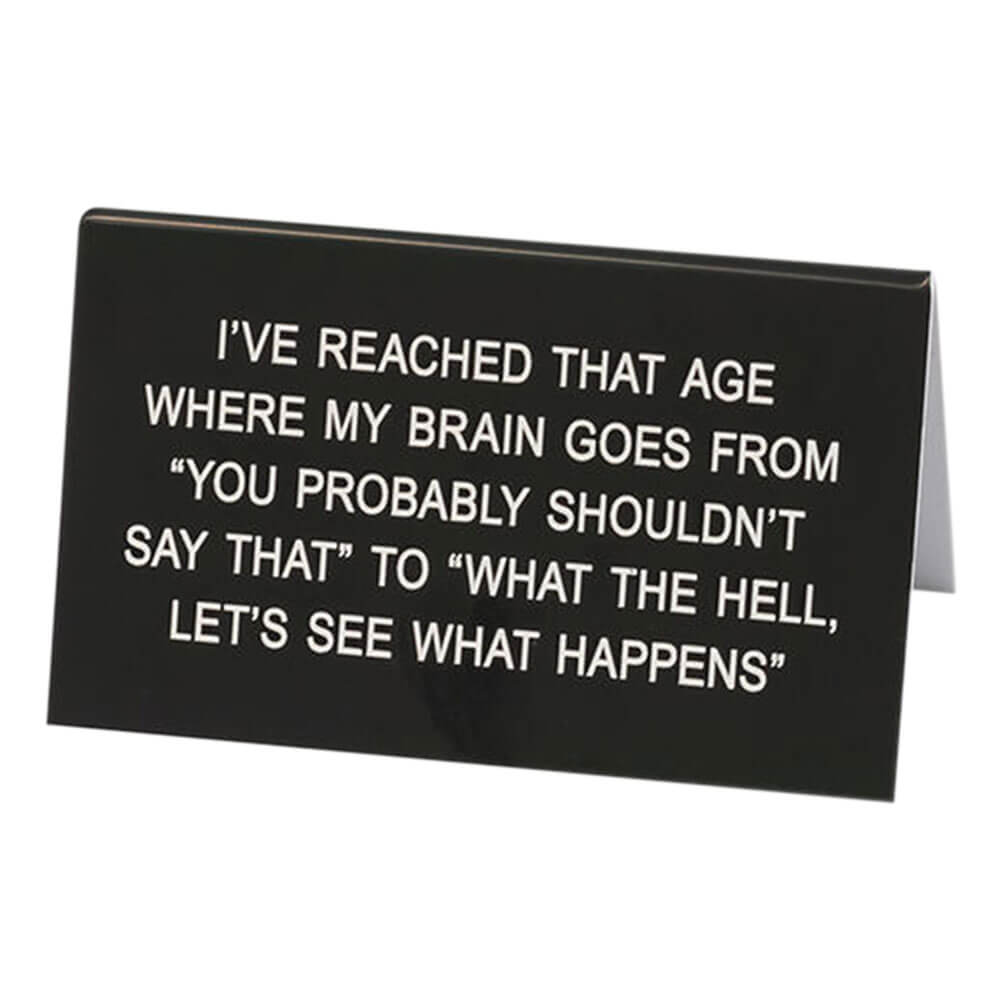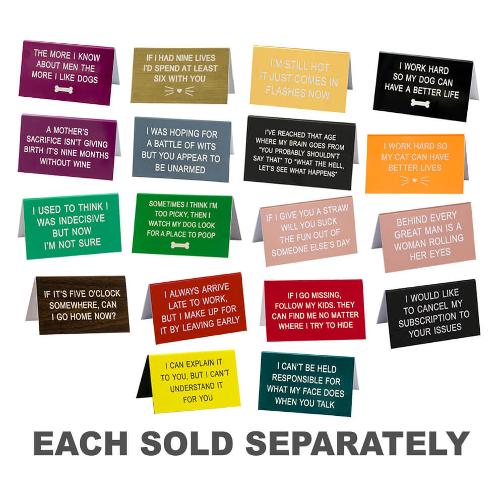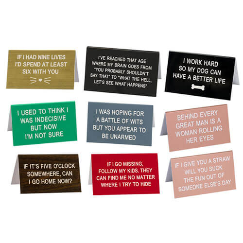 - Det lustiga säger vad? Over the Hill Desk -skyltarna erbjuder den perfekta kombinationen av torr humor och ikoniska vidd.
