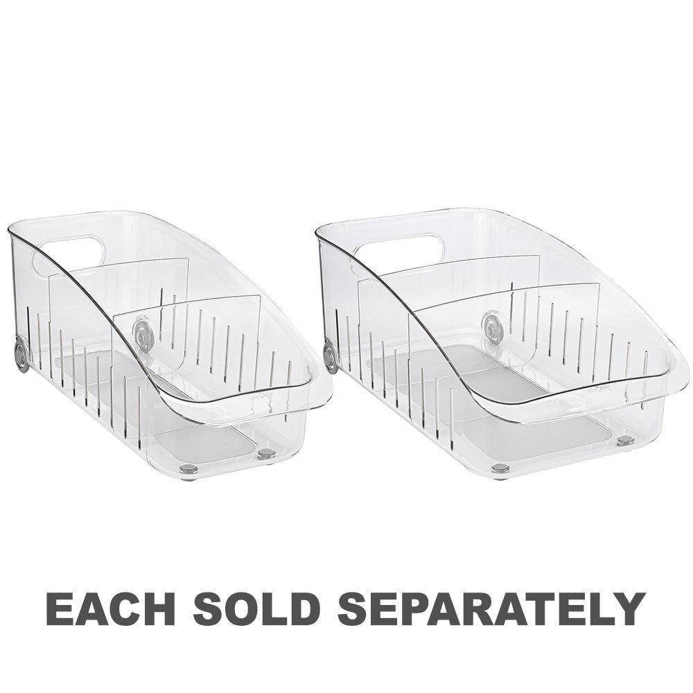 Organisera de högre och bulkigare föremålen i ditt kylskåp med lansering av kylskåp från Youcopia. Med justerbara avdelare för att bättre organisera ditt kylinnehåll, hämta objekt längre tillbaka genom att använda lådans släta hjul och robusta handtag, så att du kan dra föremål utan att störa allt i lådan.